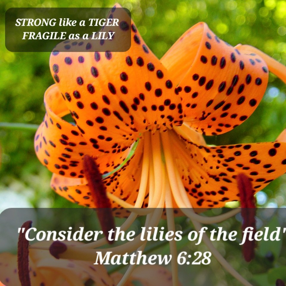 When I was born the nurses likened me to a tiger lily. I appeared so tiny and fragile like a lily but I was strong like a tiger. I still like that description. Strength and vulnerability marry well. How would I describe myself to someone else? I’m just like you. I’m someone doing the best that I can to follow the way of loving YOU and all people, including myself. God willing.